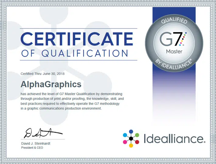 We are excited to announce that we have achieved Ideaalliance G7 Master Qualification through June 2018.