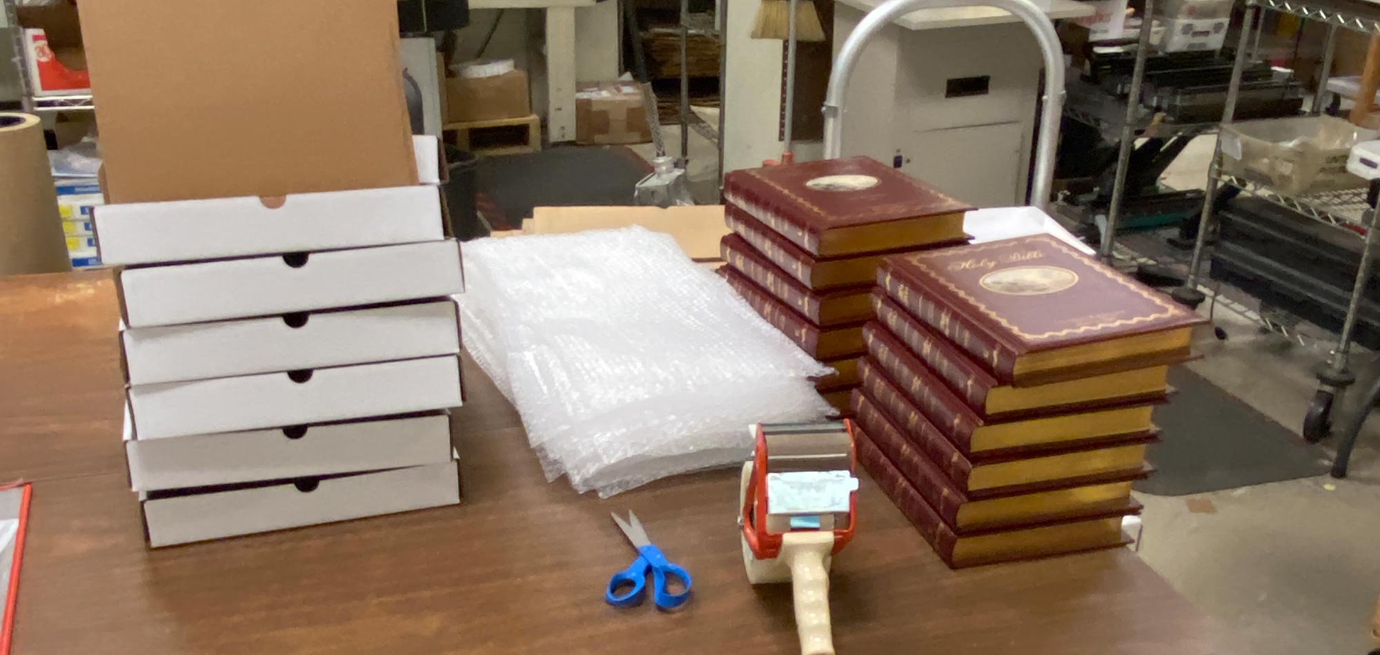 We’ve been partnering with Seattle promotional agency BRAVO! Branding to execute a creative, customized thank you gifting program they created for a Texas-based mortgage-brokerage client. We personalize (via laser etching) the cover of a Vegan-leather Bible and marry with a variable-date printed cover letter, package and ship in a weekly schedule that ensures each mortgage customer gets their special closing gift within a three-week window of closing their loan.